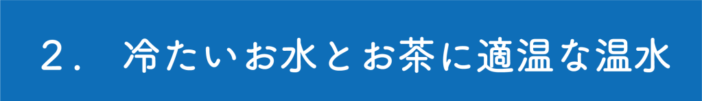 冷水(約4°C〜10°C)と温水(75°C〜85°C)をご利用いただけます。温水は火傷防止の安全ロックが施されております。