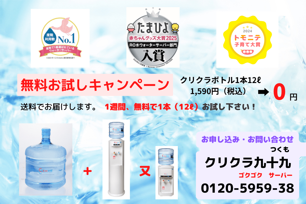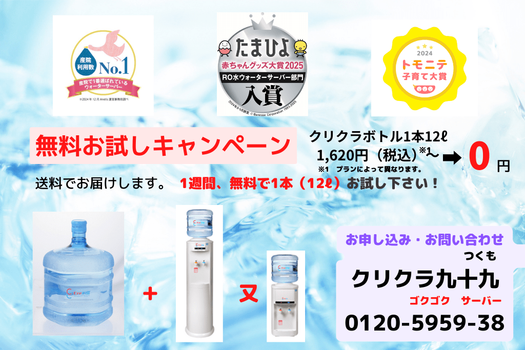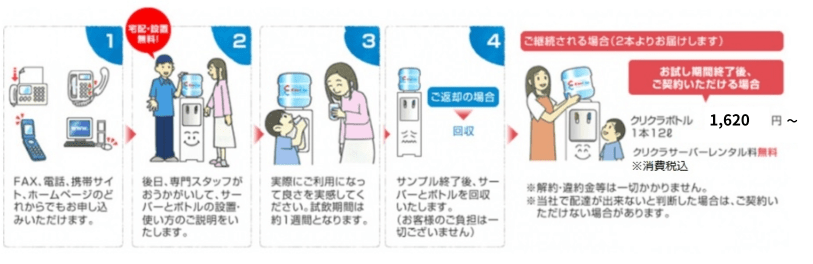 『おいしい・便利・安全・経済的』なお水、クリクラを宅配しています。